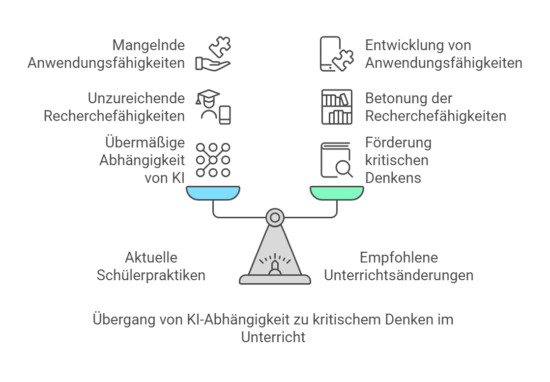 Abb. 2 - Gegenüberstellung der aktuellen Schülerpraktiken im Umgang mit KI vs. den Empfohlenen Unterrichtsänderungen